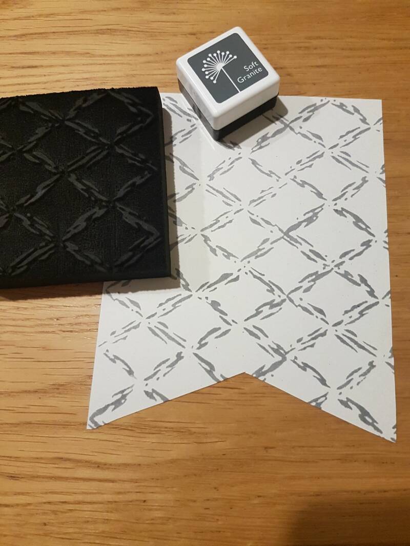 Bij het voorbeeld heb ik bij 1 banner een patroon gestempeld en bij de andere papier met achtergrond gebruikt en hier ander papier overheen geplakt.
