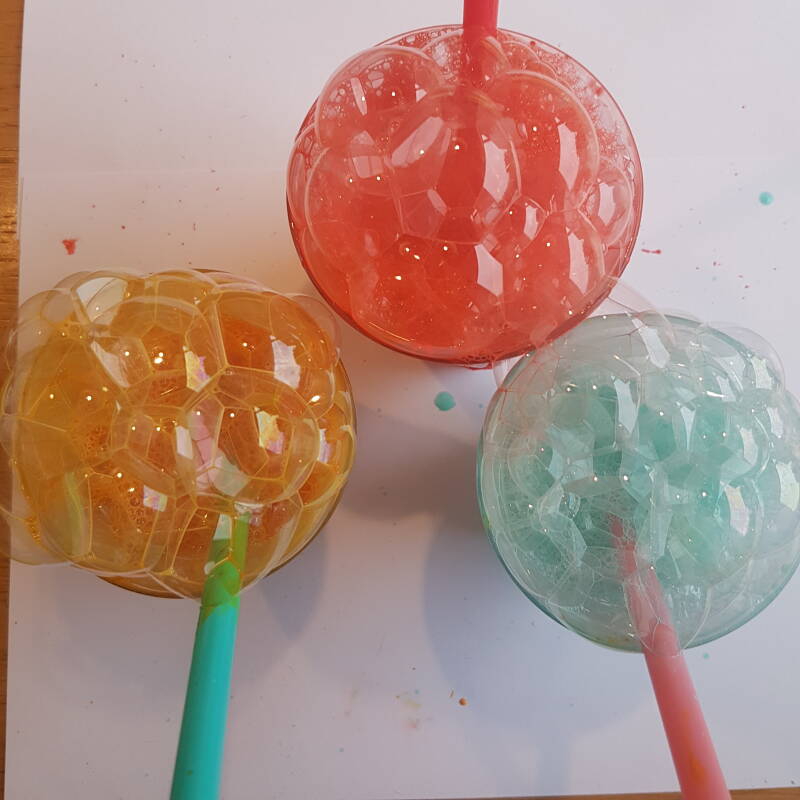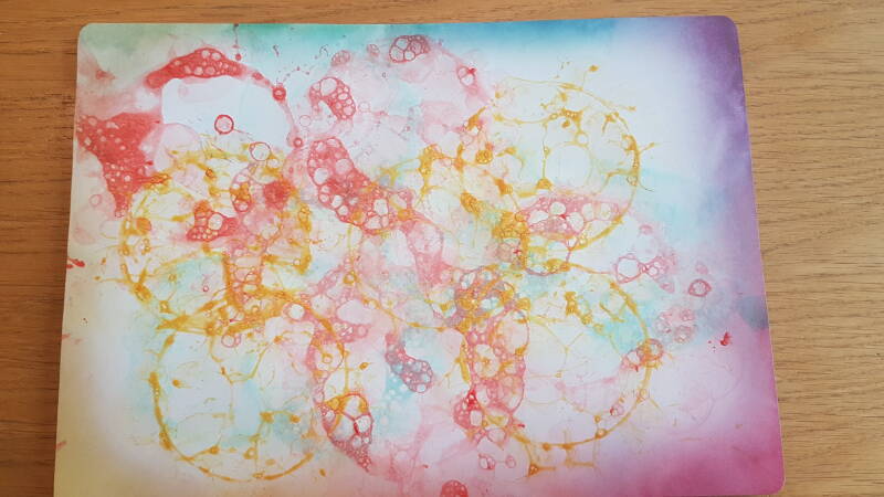 - Stop een rietje in de verf en ga bellen blazen. (Met kleine kinderen is het slim als de ouders dit doen omdat je niet wil dat ze perongelijk de verf binnenkrijgen.)