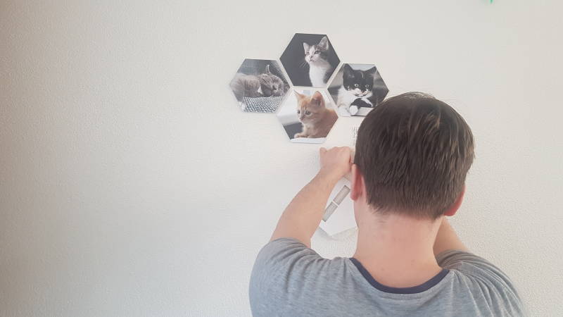 Nadat je jouw eigen wanddecoratie hebt samengesteld kun je door middel van een foto kijken hoe dit op jouw muur zou staan. Zo krijg je al snel een idee over hoe het in je kamer eruit ziet en of je nog dingen aan moet passen.