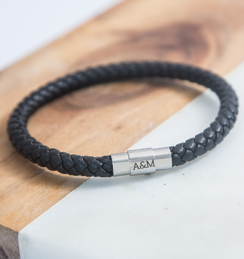 Allereerst wil ik je graag kennis laten maken met deze runder leren armband met initialen. Deze armband is subtiel en niet al te groot. Hij past daarom bij vrijwel iedere man. Je kan er de initialen van je kinderen op laten graveren maar ook jullie eigen initialen.